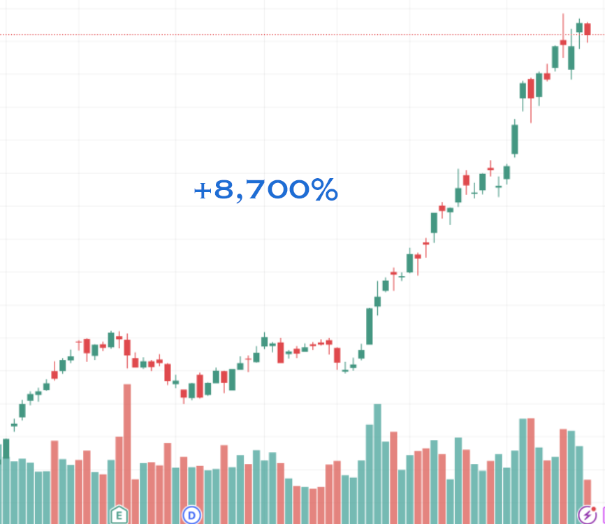 L’ultima azione di cui ha scritto il nostro team di analisti è passata da 1 euro a 88 euro nel suo punto massimo lo scorso anno. Un rialzo dell’8.700%.